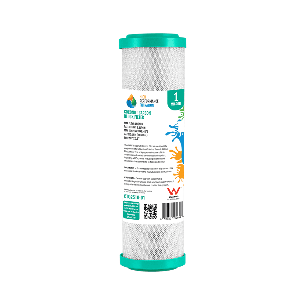 1 Micron - Coconut Carbon Block Water Filter - Chlorine Taste & Odour - 10" x 2.5"