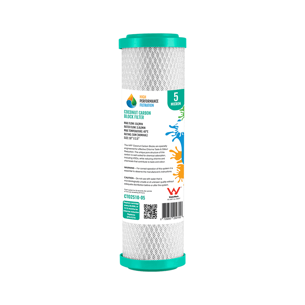 5 Micron - Coconut Carbon Block Water Filter - Chlorine Taste & Odour - RO Pre-Filter - 10" x 2.5"