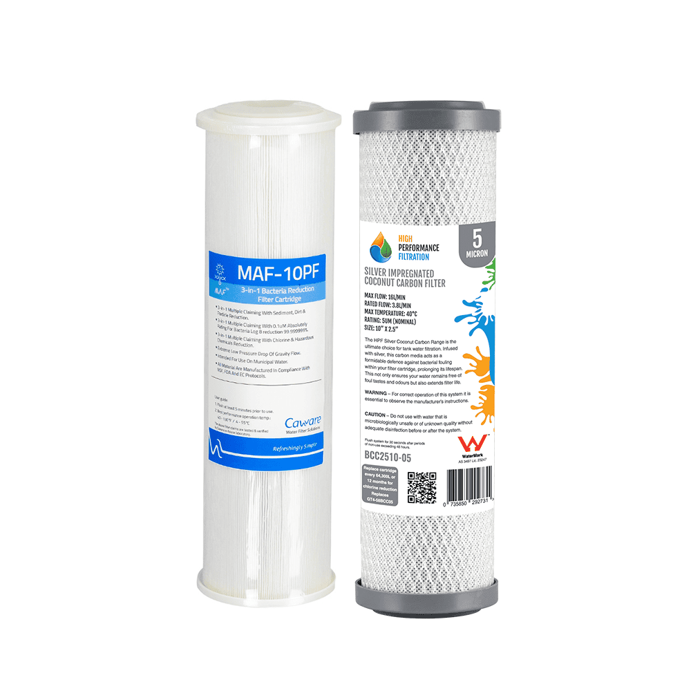 Together, these cartridges target harmful pathogens and impurities to deliver safe, great-tasting water from non-mains supplies like rainwater tanks.